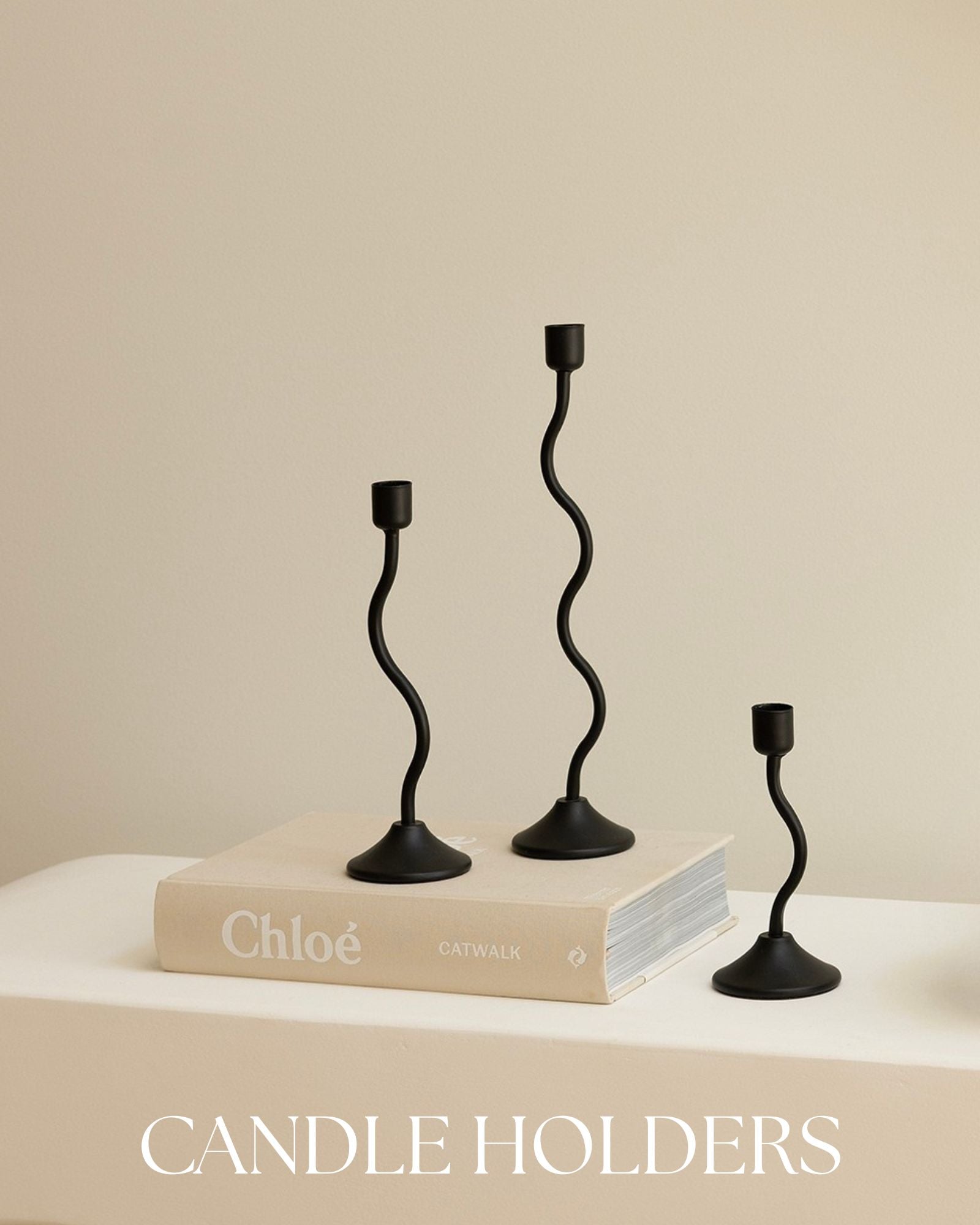 This candle set is timeless. Its matte black finish and wavy silhouette make it a versatile statement piece for every space, whether they are styled on their own or as part of the set! Ours is currently styled on our sideboard and receives many compliments when we have guests over!