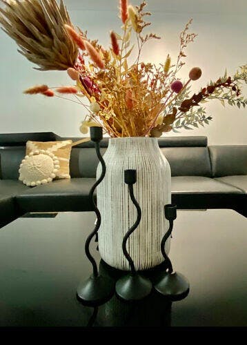 With a beautiful wavy silhouette, and a sleek matte black finish, the Sienna Wavy Candle Holder adds a fun and modern twist to your styling.